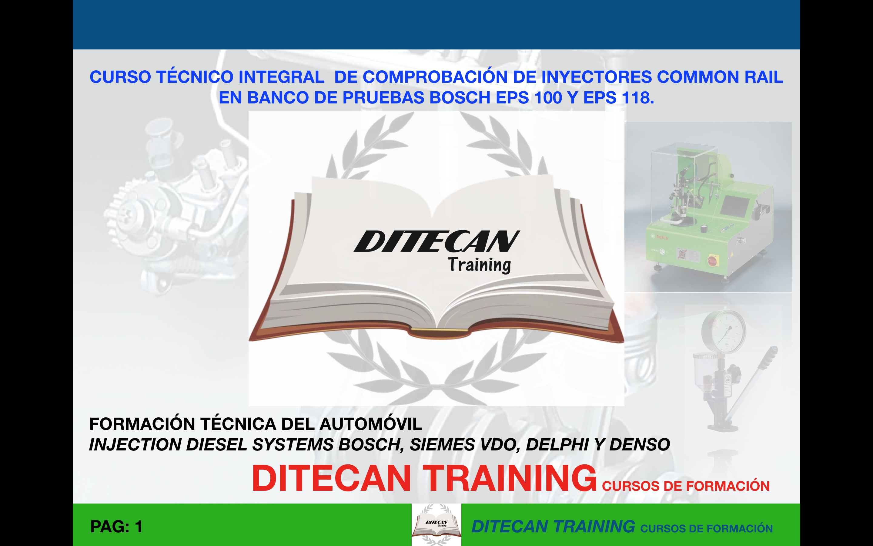 Curso indicado para aquellas personas profesionales o aficionadas al mundo de la automoción, que desean adquirir conocimientos de comprobación y diagnostico de inyectores common rail, con el comprobador de inyectores Bosch EPS 118 y EPS 100.
